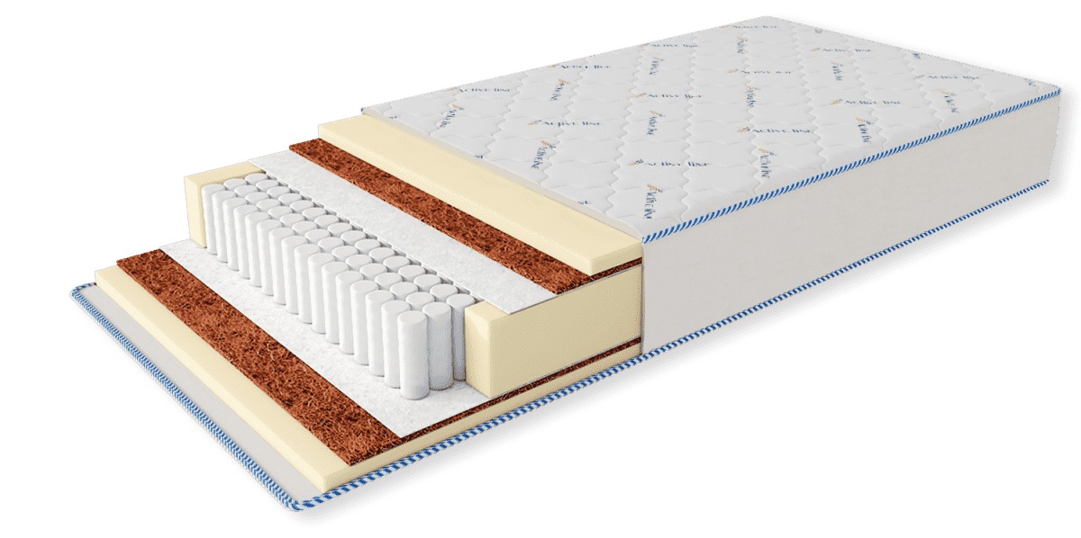 Данная линейка матрасов "Active Line" впервые была представлена в 2014 году на ежегодной выставке "Экспомебель Урал". К данной линейке матрасов "Active Line" сразу было приковано очень много взглядов и небывалый интерес. Ведь это новинки от компании "Релакс". Они вложили весь свой многолетний опыт в разработку этих матрасов. Универсальная модель матраса, в состав входит слой натурального пролатексированного кокосового волокна и пена Air Foam. Кокосовое волокно - состоит из спрессованных волокон кокосового ореха, пропитанных специальным составом на основе натурального латекса. Чрезвычайно прочен и долговечен, придает упругость и жесткость. Именно благодаря латексной пропитке кокосовая плита не разваливается и сохраняет свою форму даже после длительного использования при больших нагрузках.  Верхний слой - пена "AirFoam" - наилучшая вентилируемость - способность пены пропускать достаточно большие объемы воздуха через свою структуру, хорошо отводить влагу и тепло.